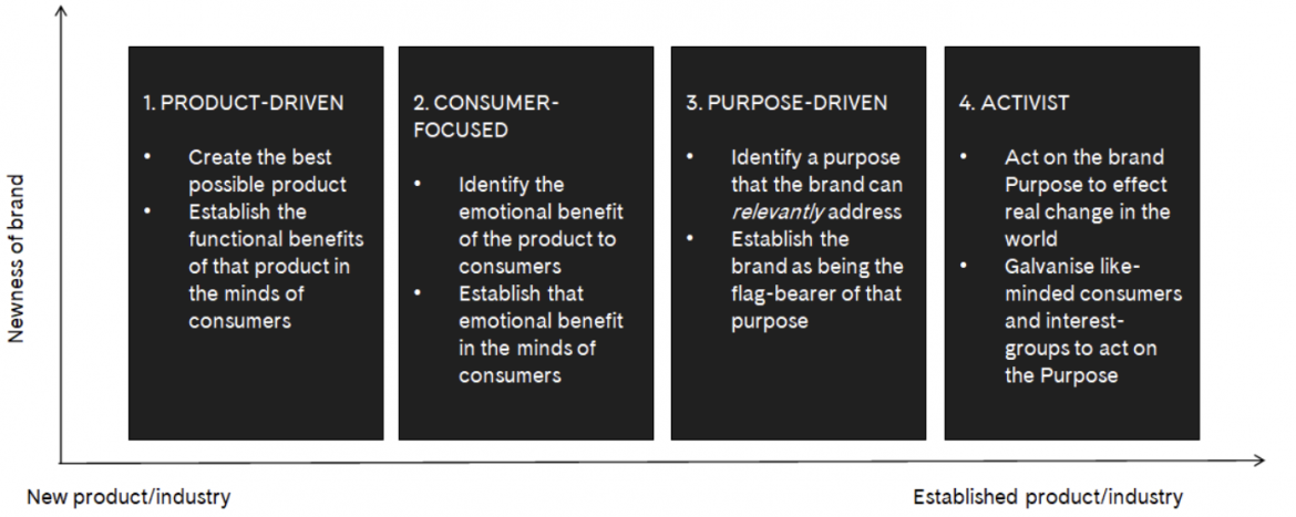 At Strat house we see this being reflected in the evolving model of our ‘brand journey’ framework: the development of how a brand thinks and acts. There has been a clear shift, and we work with marketers who are feeling far more pressure to move towards the right, towards purpose and even brand activism.