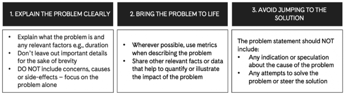 Then it’s time to write the actual problem statement itself. Here are our guardrails: